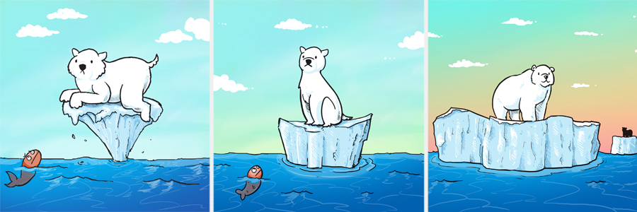 We’re all results-oriented creatures, however, so in order to help provide a positive immediate feedback for reducing your carbon footprint, Nancy Wong thought up an idea of a polar bear that you gradually save from doom. We’ve all seen the picture of a polar bear drifting away on a small iceberg.