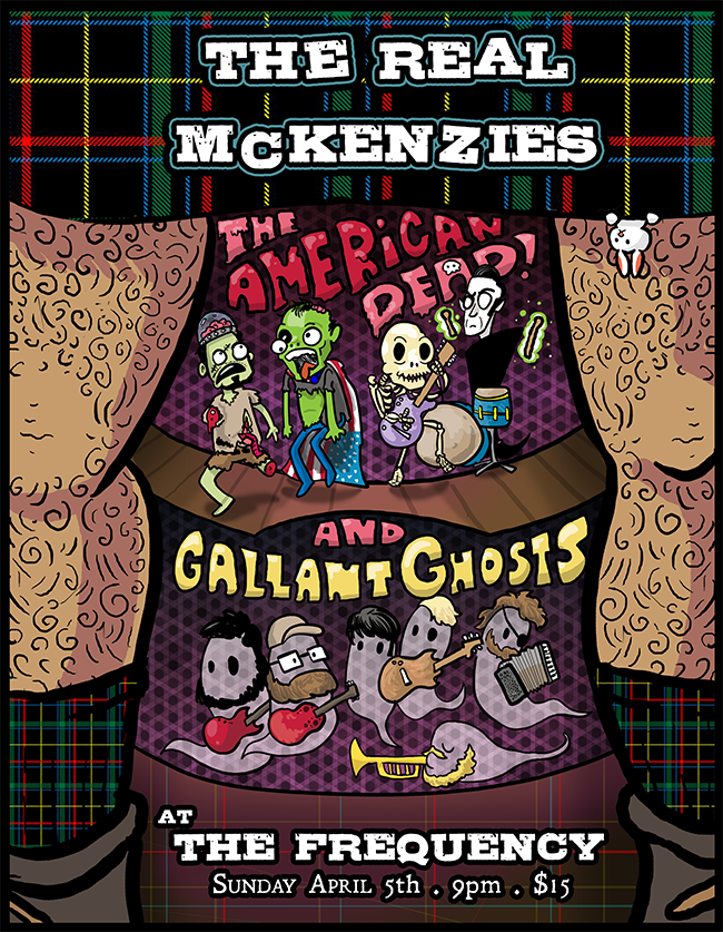 In addition to that, I also threw together a couple of stickers for us to sell manipulating some Public Domain imagery and a poster for a show we played with The Real McKenzies. Which was an amazing show! Paul McKenzie is a beast.