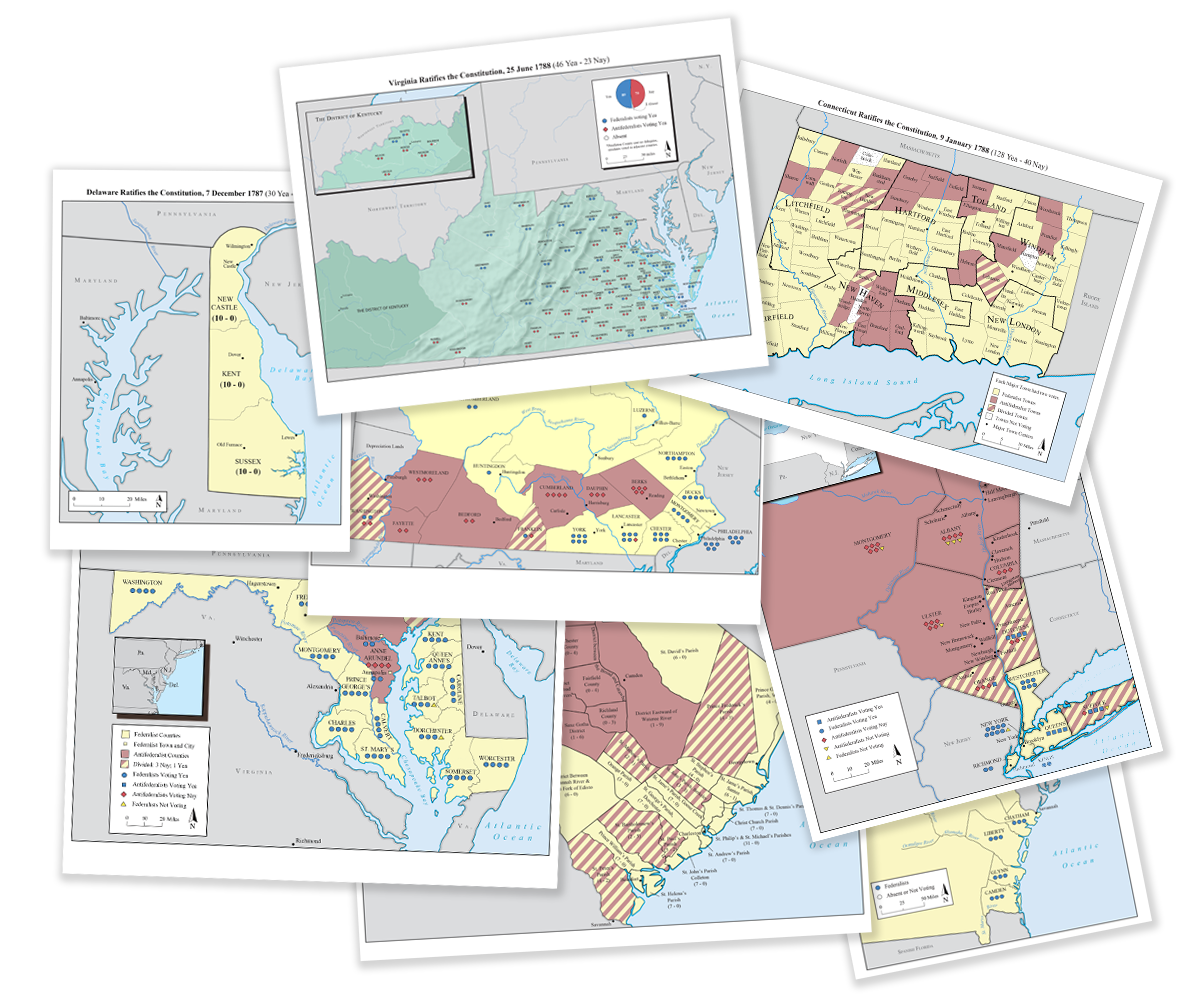 Through the Cartography Lab, I’ve also been creating and updating a series of maps for the Center for the Study of the American Constitution. Each of the original states that ratified the constitution have their own map showing how they voted- some did it by county, others by towns.